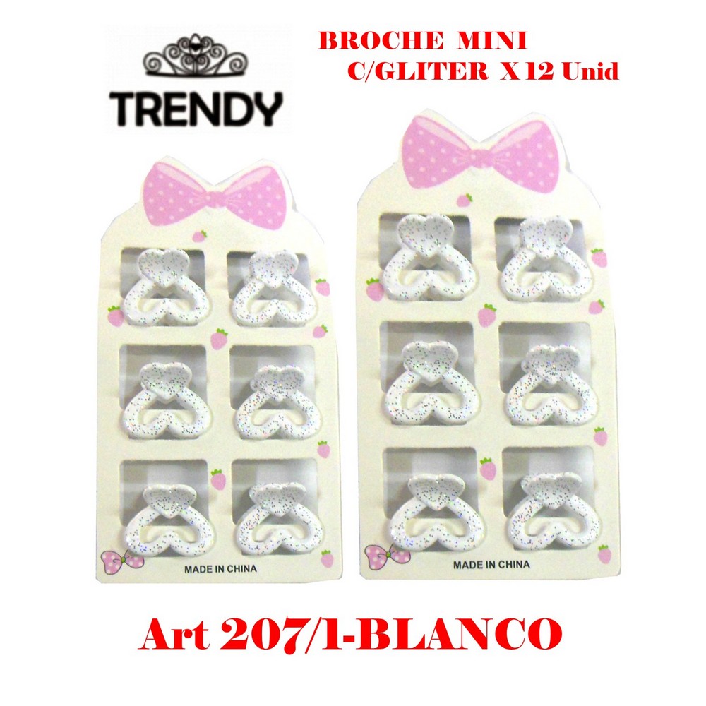 19518-BROCHE NYLON "TRENDY" MINI C/GLITER / PERLITAS COLOR x 12 unidades