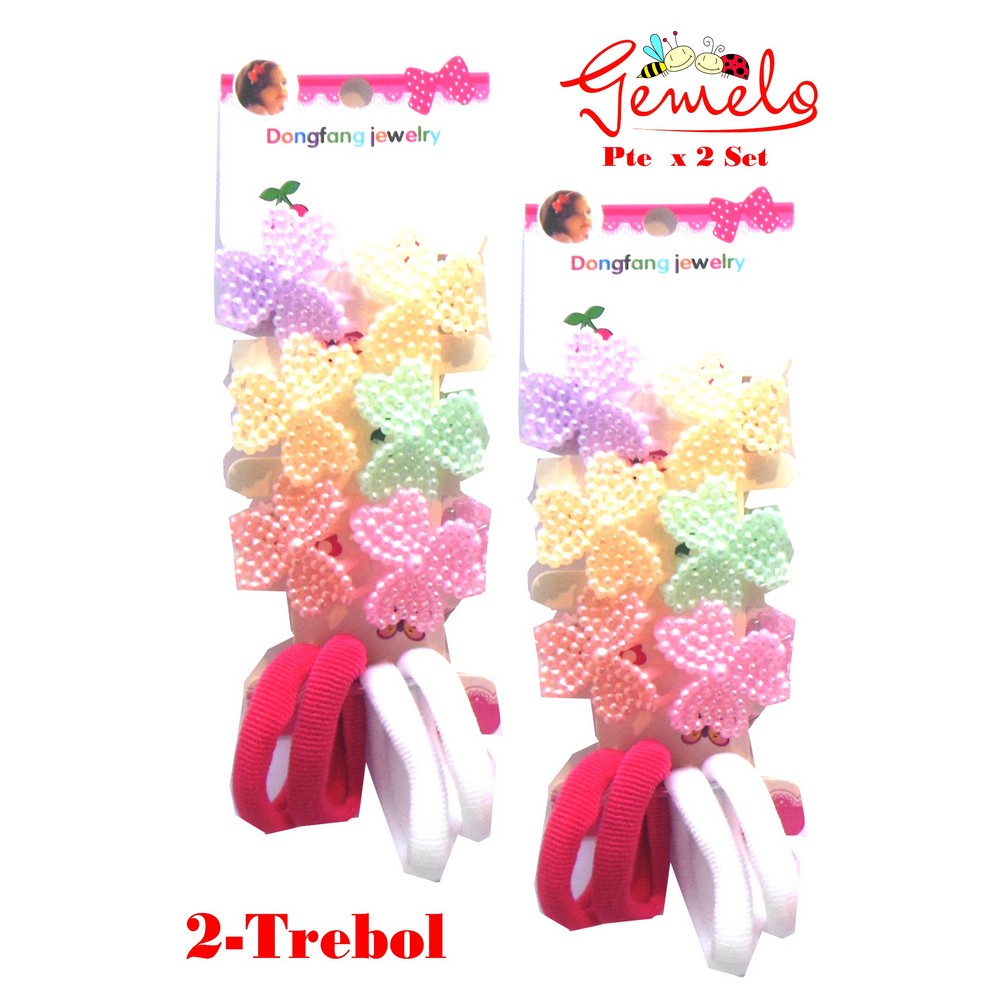 21415-SET PARA NENA "GEMELO" BROCHE TREBOL Y GOMON x 2 unidades