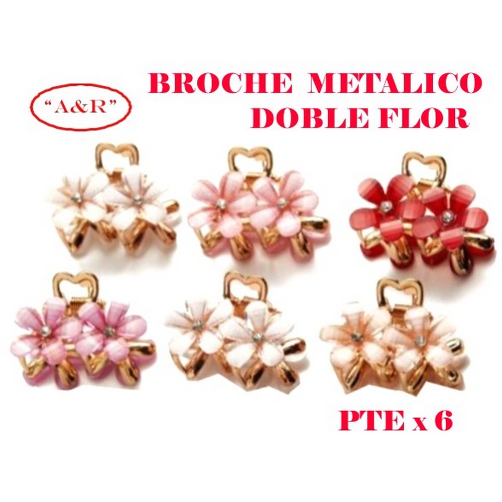 22331-BROCHE METAL "A&R" DOBLE FLOR ESMALTADA X 6 UNID.
