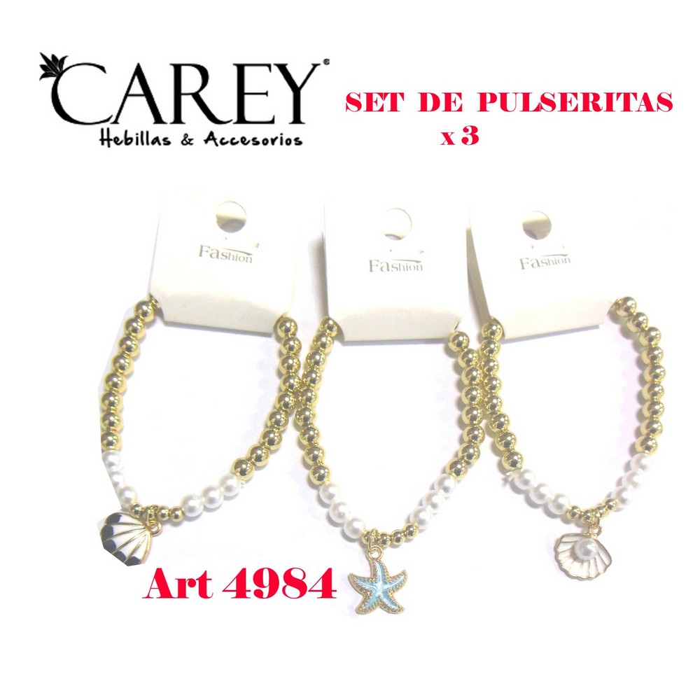 43445-PULSERA "CAREY" BOLITAS DORADAS C/DIJE x 3 Unid.