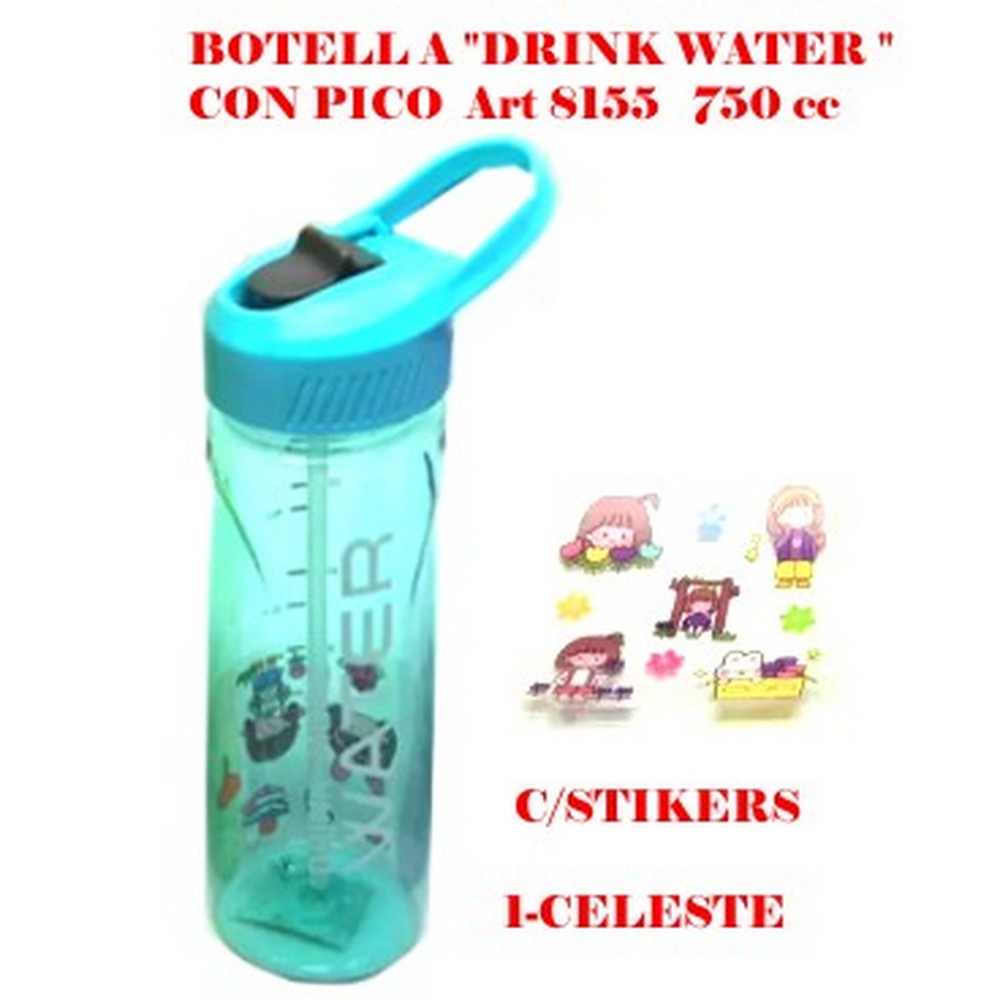 9466-BOTELLA P/DEPORTE "DRINK WATER" C/Pico y Stickers Art 8155/9175 x 750 cc.