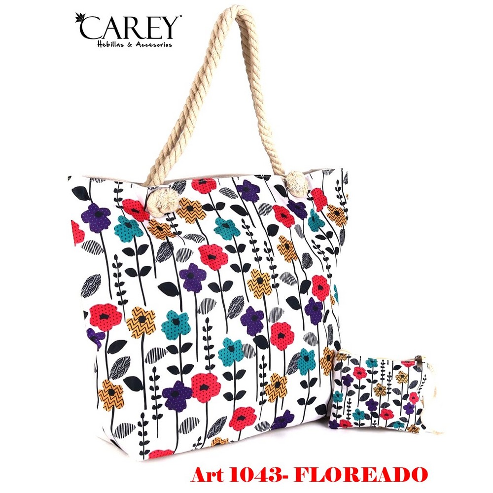 15814-BOLSO PLAYERO "CAREY" LONA FLOREADO +MONEDERO Art 1043/4/5/6/7