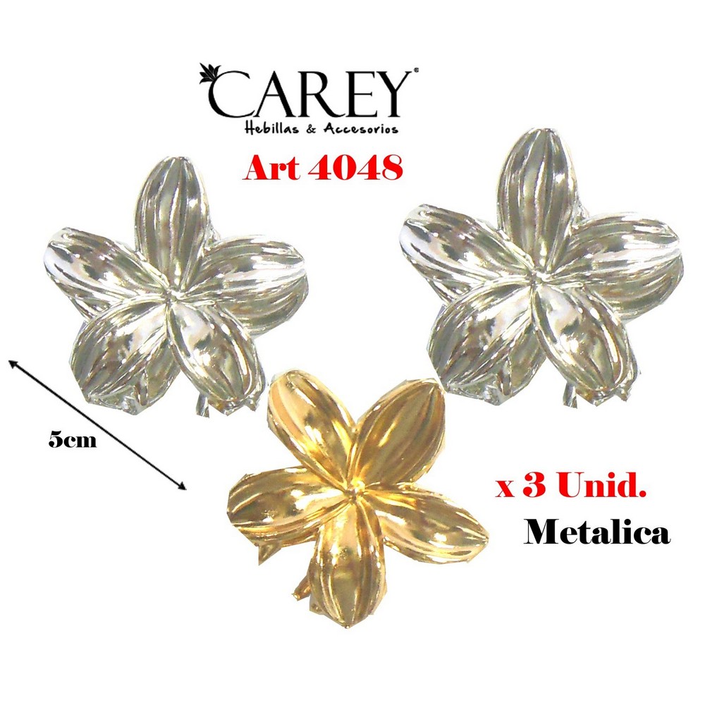 20681-BROCHE METAL"CAREY" FLOR DORADA Y PLATEADA x 3 Unid Art 4056