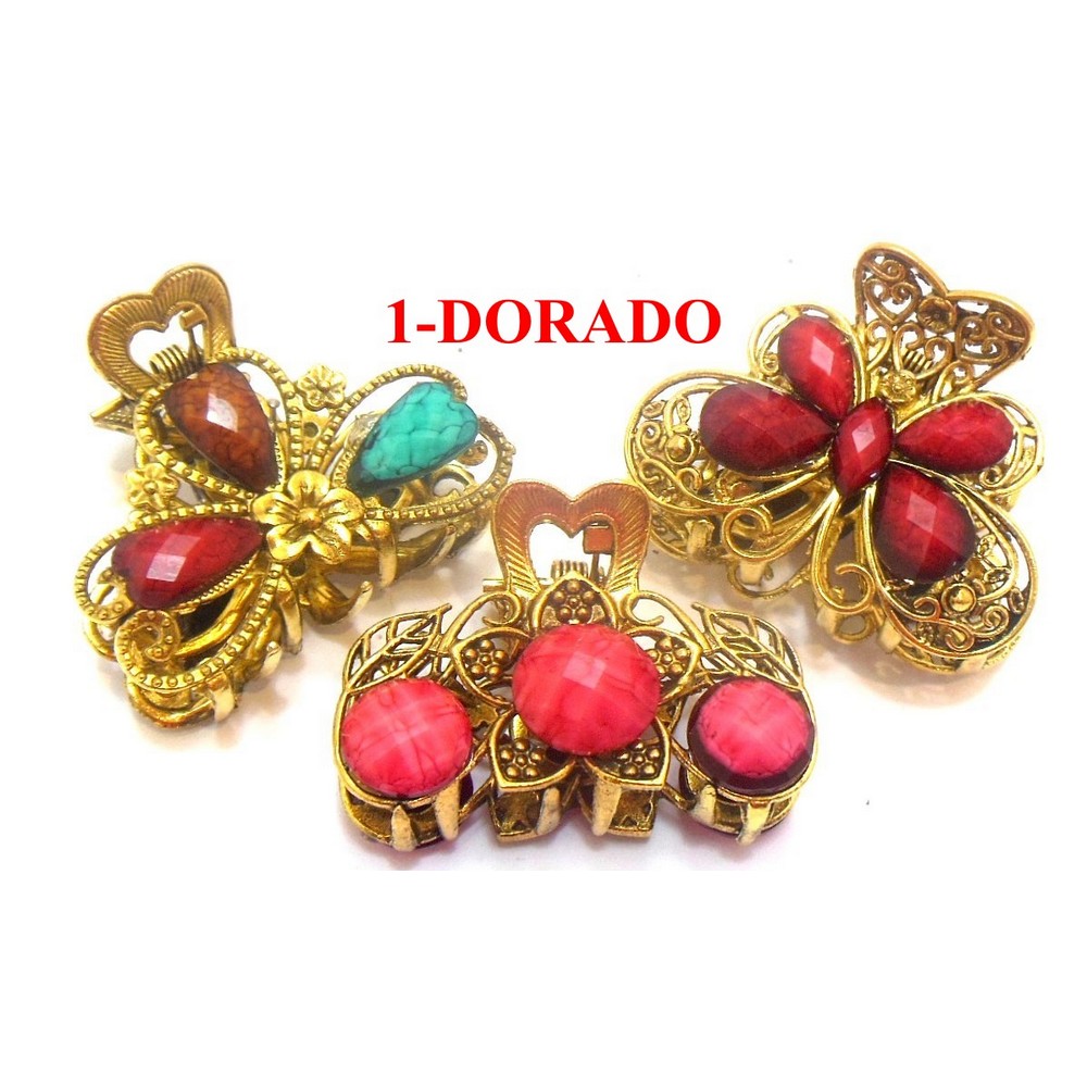 24911-BROCHE METAL "A&R" GRANDES C/ STRAS DORADO x 6 unidades